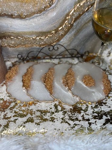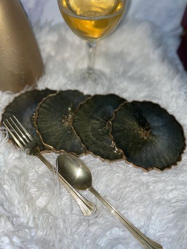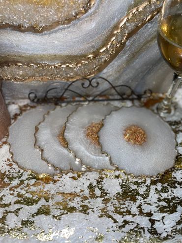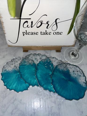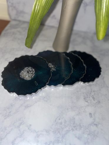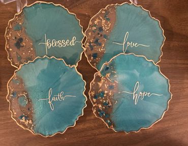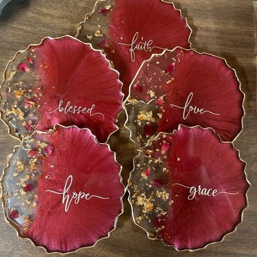 All coasters can be purchased with or without the matching platter, tray or decorative stand. Our coasters are larger than a standard coaster and are perfect for large mugs. Each coaster measures about 5 inches in diameter unless otherwise listed.